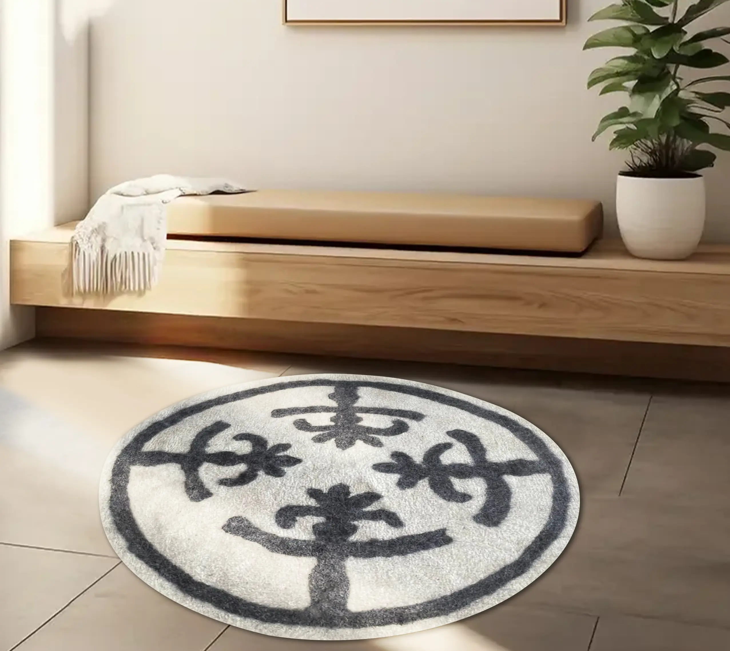 در این اثر مینیمال، چهار فرم گیاهی در چینشی دایرهوار گرد هم آمدهاند؛ الهامیسادهشده از دانههای اسپند، گیاهی که از دیرباز در فرهنگ ایرانی با مفهوم پاکی، حفاظت و خیر گره خورده است. سادگی در اجرا و وضوح در نمادپردازی، «سپند» رابه یک نشانهی مدرن از آیینهای کهن بدل کرده؛ گویی شکل نمد و نقش، حامل نیرویی محافظ، مقدس و سرشار از نیکی است که در فضای خانه حضور مییابد.